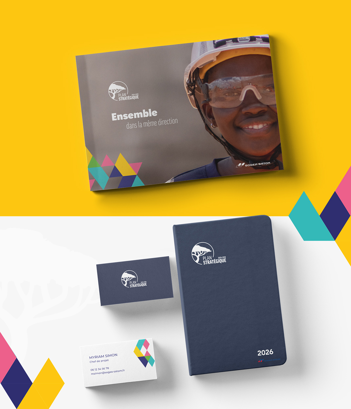 L’agence NYL Communication a eu le privilège d’accompagner SOGEA SATOM, filiale du groupe VINCI, basée en Afrique, dans la création de son identité visuelle concernant son nouveau Plan Stratégique 2025-2028. Ce nouveau logo incarne bien plus qu’une direction : il reflète les engagements, les valeurs et la vision d’une entreprise résolument tournée vers l’avenir, le développement durable et l’impact positif sur les territoires africains. De la réflexion stratégique à la création graphique, nous avons conçu un univers visuel à la hauteur de cette ambition : lisible, inspirant, engagé et surtout très graphique, reprenant l’emblème de l’acacia allié à une mosaïque de couleurs et de formes. Merci à SOGEA SATOM pour sa confiance dans cette belle collaboration, porteuse de sens et de perspectives.